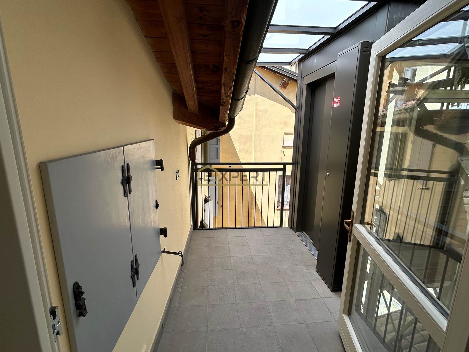 🏛️ Ascensore nuovo in vetro e acciaio, installato nel cortile interno, accessibile anche a persone con disabilità in piena autonomia.